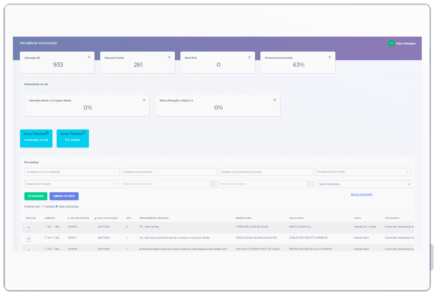Redução da aprovação de procedimentos desnecessários decorrentes da aprovação manual, maior efetividade do setor de autorizações.