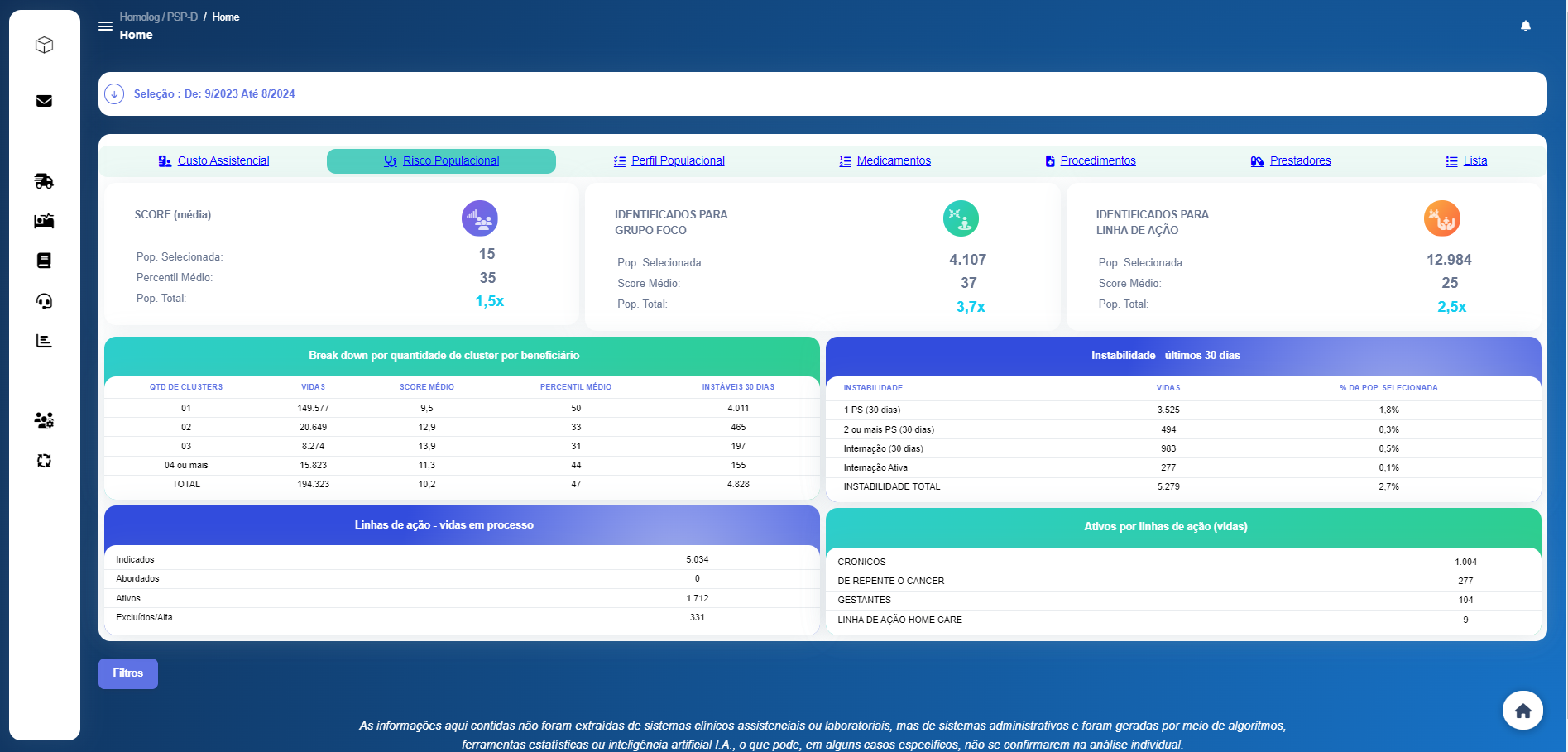 Serviço consultivo apoiado por tecnologia avançada que permite a construção de um Diagnóstico Avançado de Risco Populacional em Tempo Real, estratificação da população em +100 clusters.